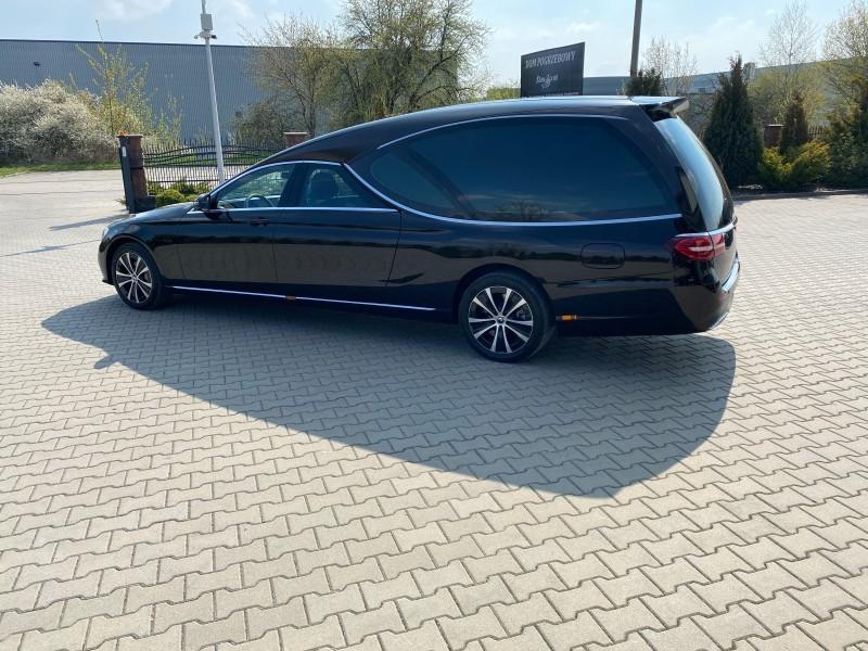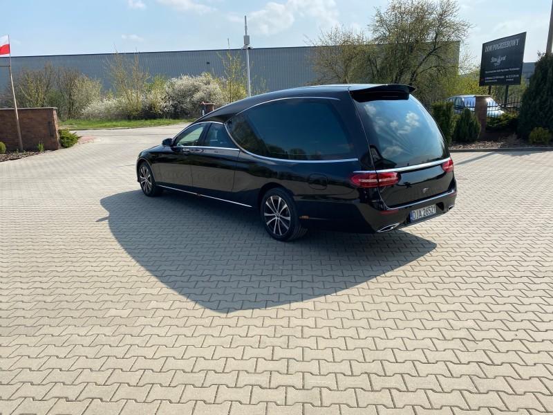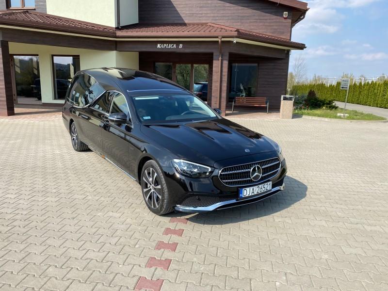 15 kwietnia 2021 roku nasza flota samochodowa powiększyła się o najwyższej jakości nowy karawan typu Premium. Jest to pierwszy w Europie egzemplarz karawanu Mercedesa w wersji Plug-in Hybrid wykonany przez włoską firmę Pilato. Samochód w trybie elektrycznym jest praktycznie bezgłośny co dodaję mu jeszcze większego prestiżu podczas ceremonii pogrzebowej. Część trumienna wykonana jest z najlepszych materiałów uzupełnionych o automatyczne, elektryczne sanie na trumnę wraz z ledowym oświetleniem i bezprzewodowym nagłośnieniem.