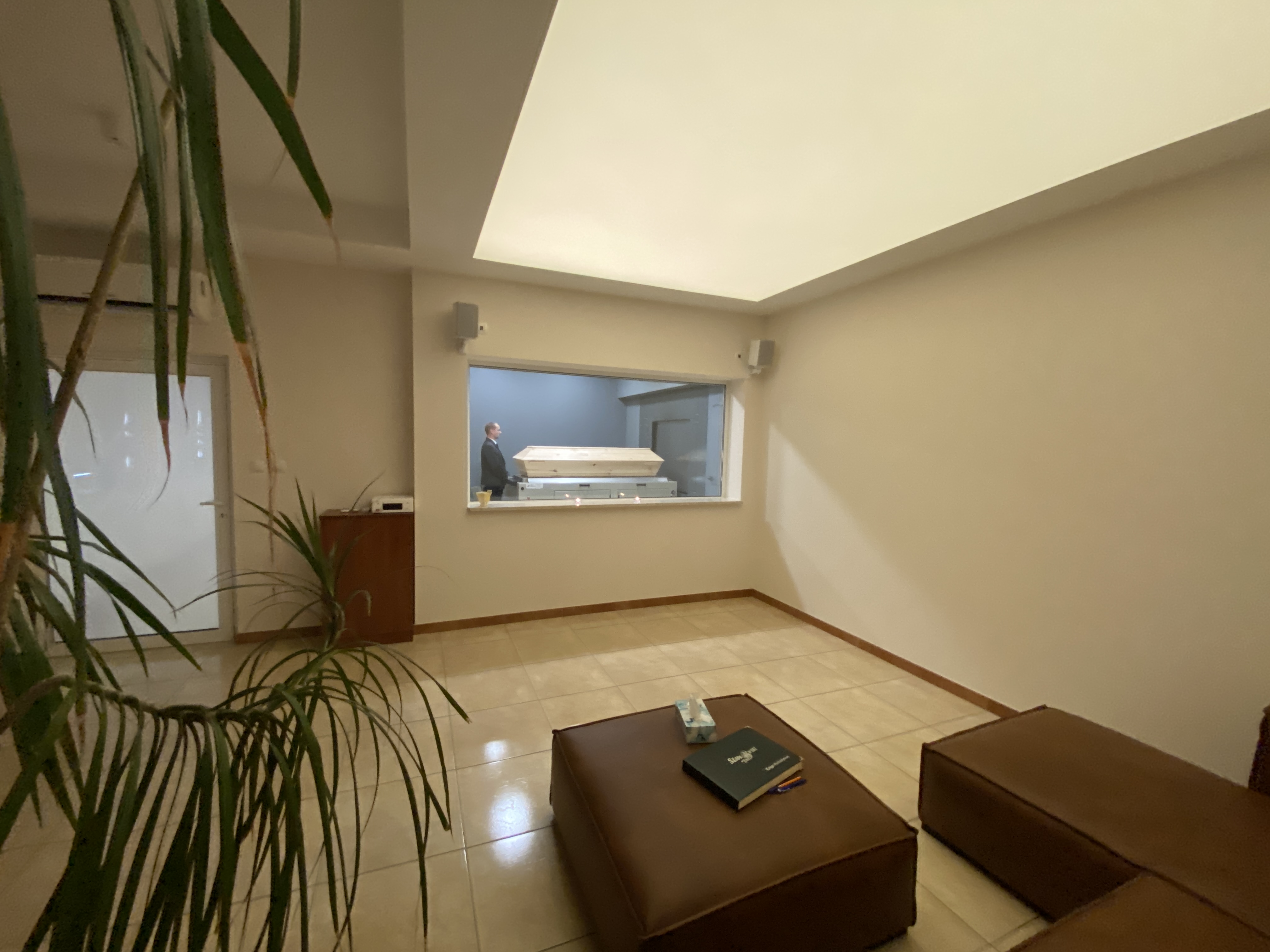 - Salę Pożegnań, z której można zobaczyć moment wprowadzenia trumny do pieca kremacyjnego