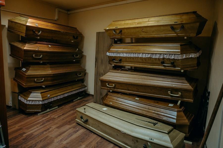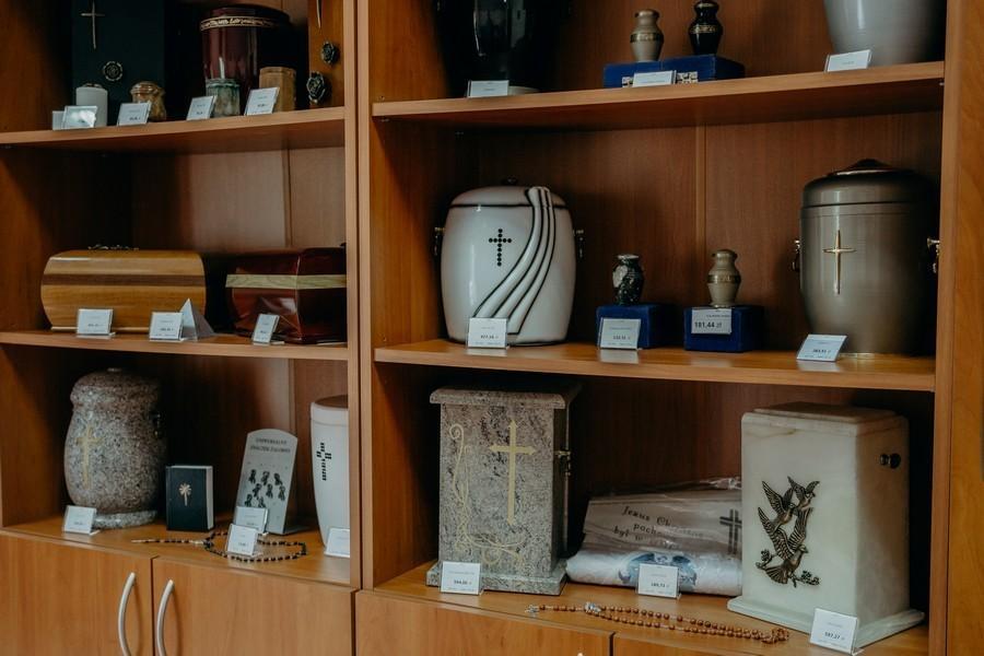 pomieszczenie z ekspozycją trumien i urn