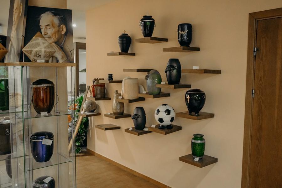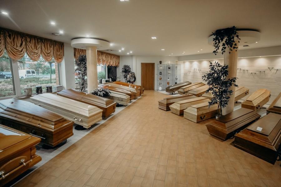 salon z ekspozycją trumien, urn, odzieży i innych akcesoriów